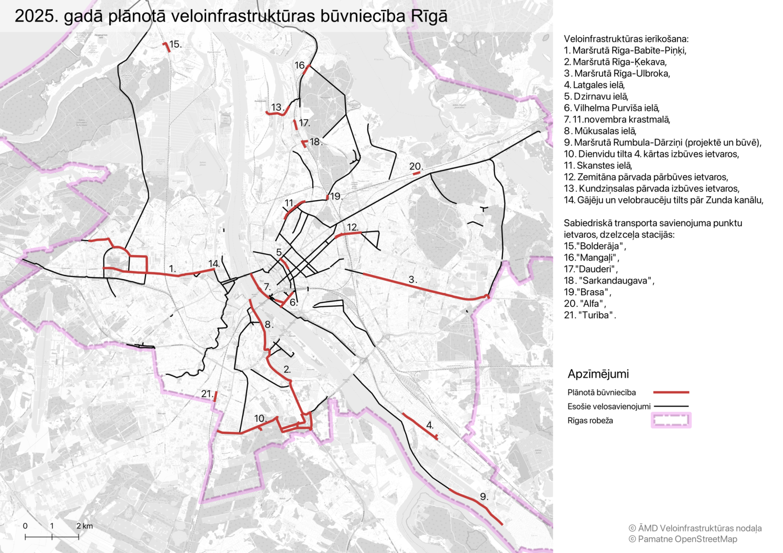 Rīgā sākusies reģionālas un pilsētas nozīmes veloinfrastruktūras izbūve maršrutā Rīga–Babīte–Piņķi. Ņemot vērā sabiedrības paustās bažas par koku saglabāšanu, projekta realizācijas gaitā tiek darīts viss iespējamais, lai esošie koki tiktu saglabāti, ja to stāvoklis un atrašanās vieta to ļauj. Koku ciršana notiek tikai tad, ja nav iespējami alternatīvi risinājumi, un projektētāji darba gaitā veikuši vairākas korekcijas, samazinot cērtamo koku skaitu.